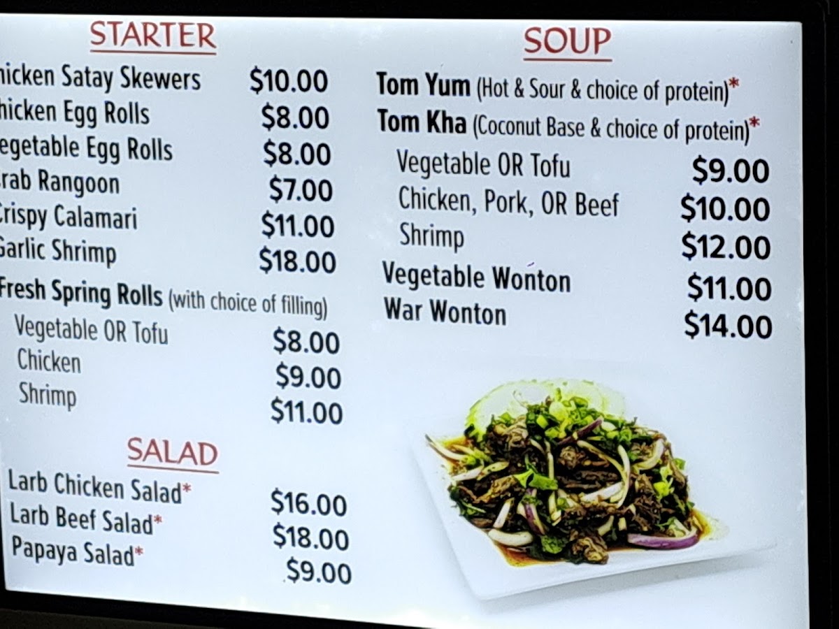 Sliced Beef mixed with Thai Herbs and served with your choice of Sticky Rice or Jasmine white Rice.
